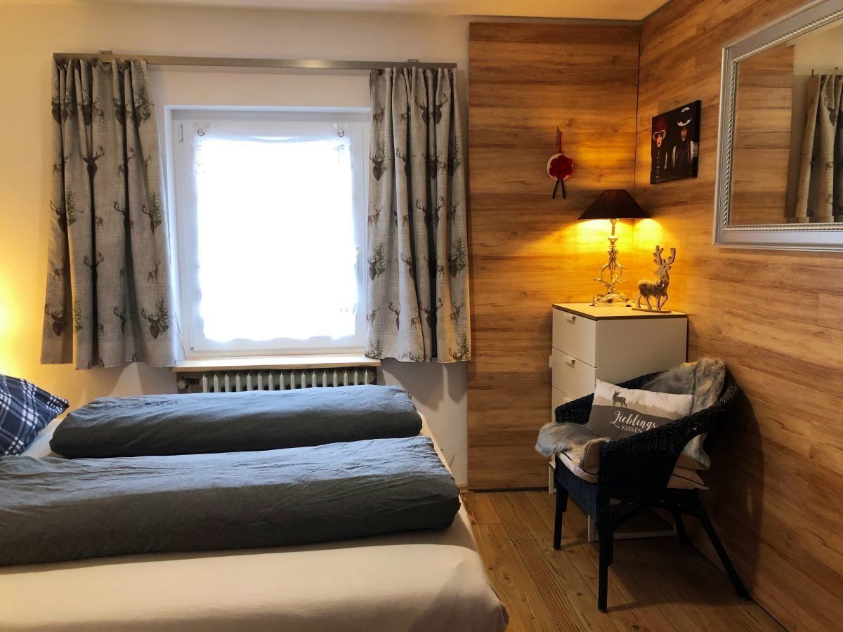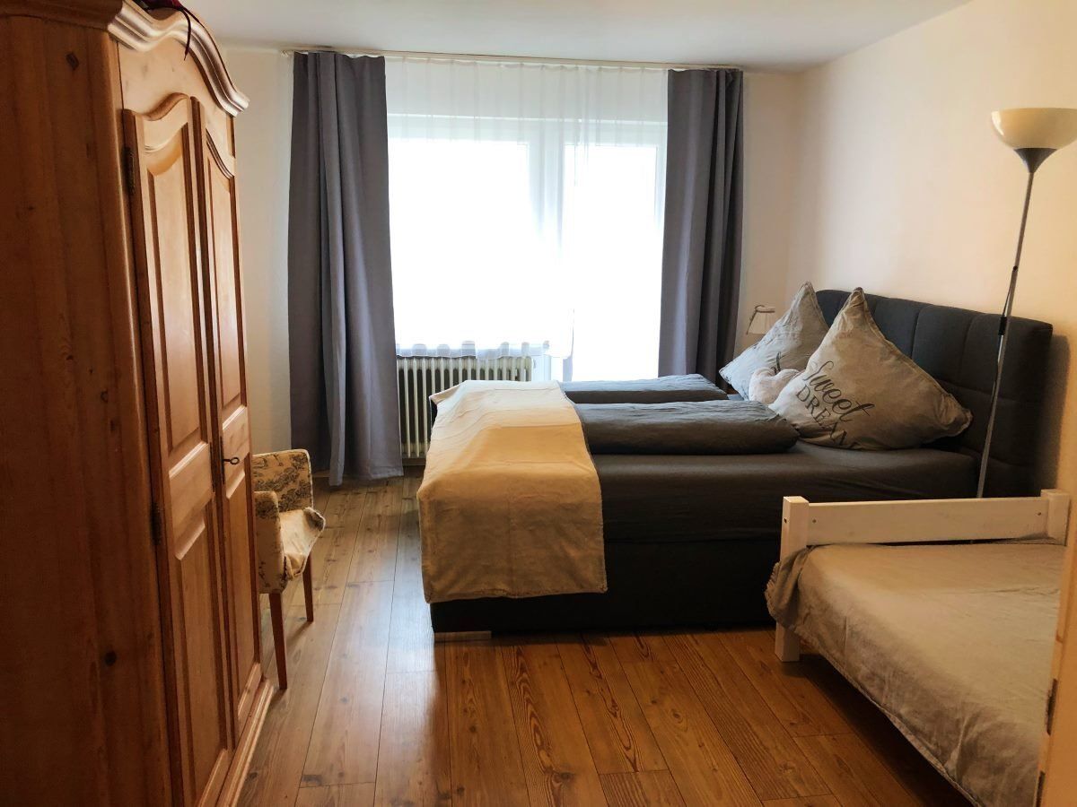 - Schlafzimmer 1: Doppel-Boxspringbett, Kleiderschrank, Nachtschränke und ein zusätzliches Einzelbett. Hier können 3 Personen gemütlich schlafen.