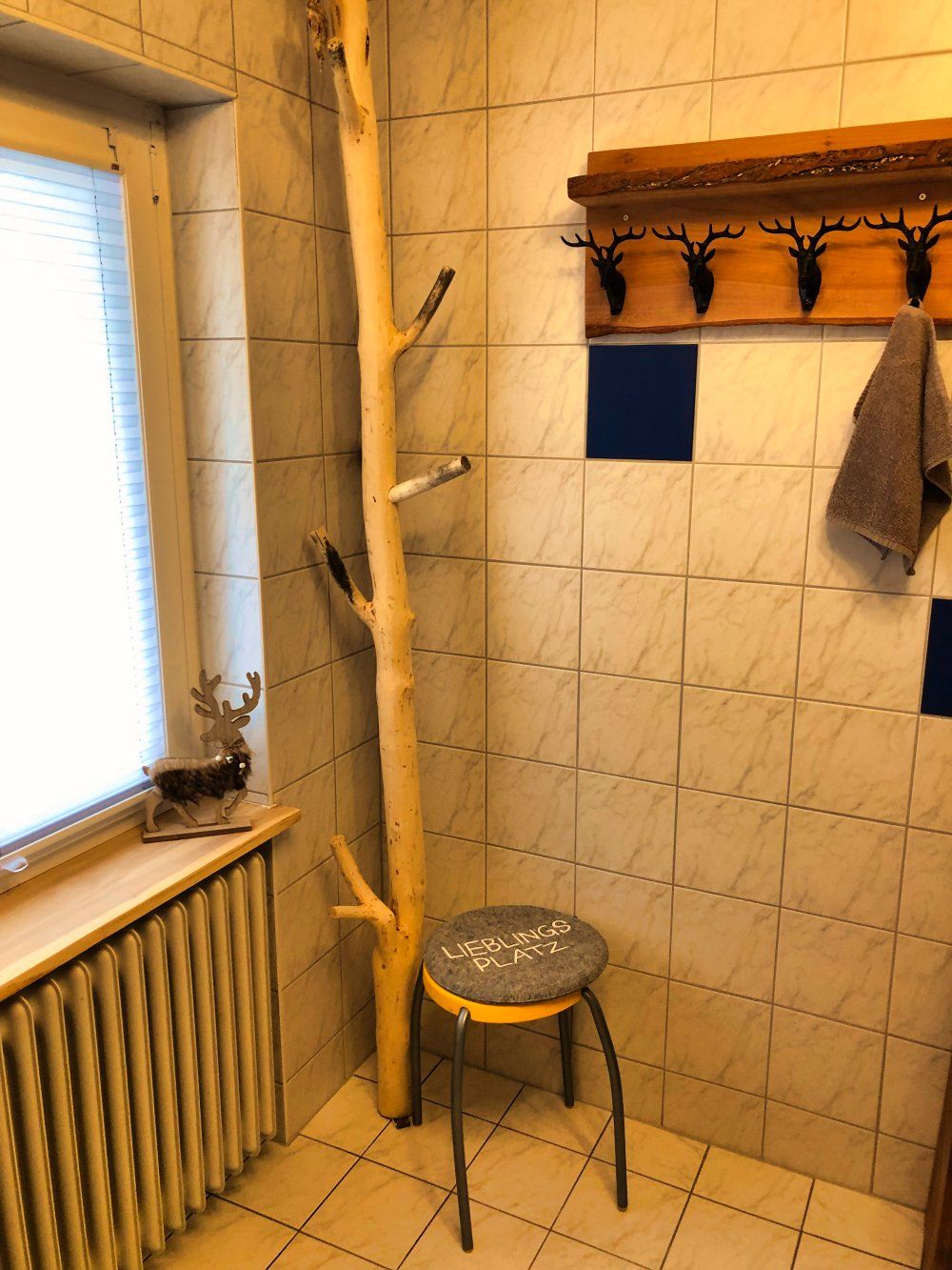 - Duschbad: Dusche, WC, Waschplatz, Toilettenpapier, genug Handtücher für alle Personen.