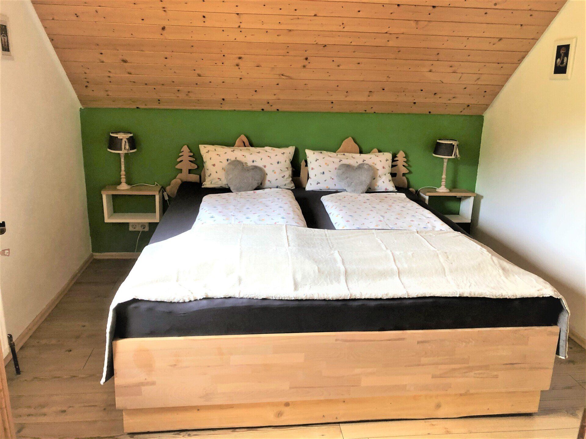 - Schlafzimmer, Doppelbett, Nachtschränke, offenen Kleiderschrank und eine Kommode.